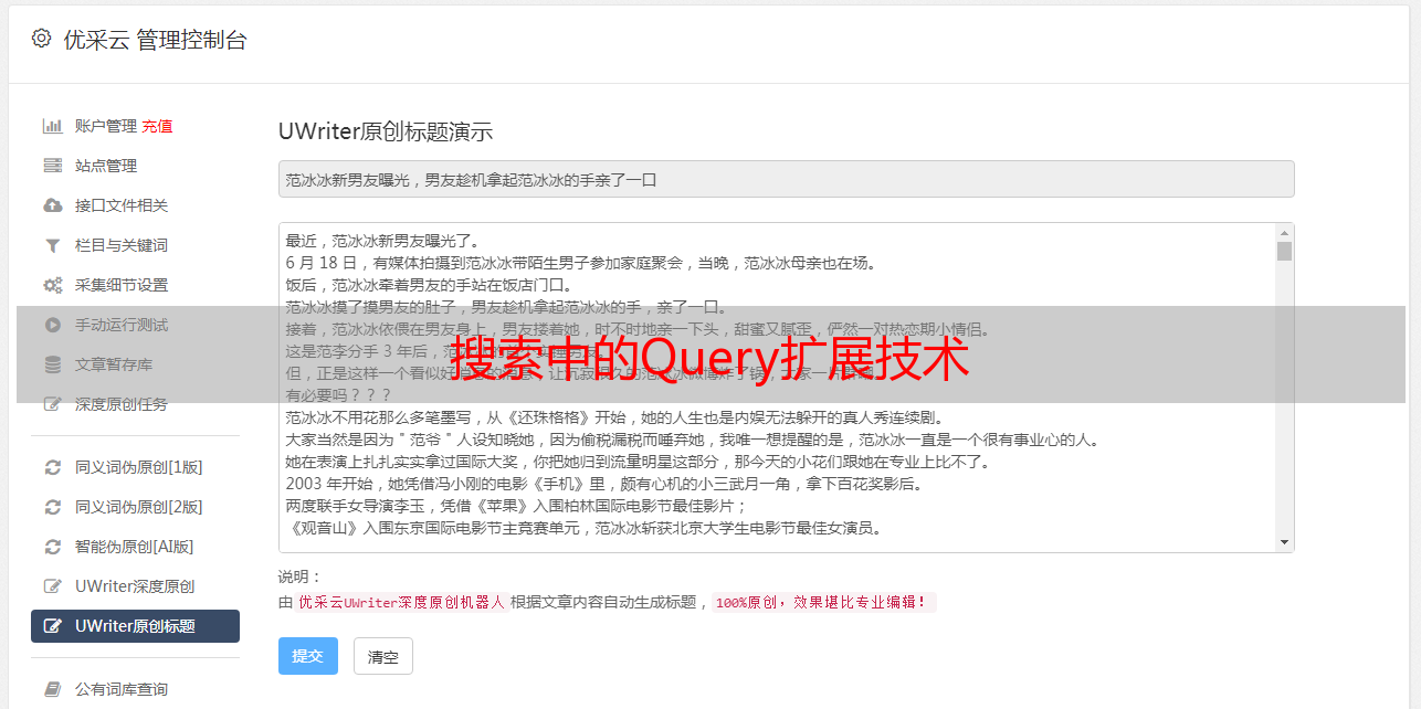优采云 发布时间: 2022-06-20 14:21搜索中的Query扩展技术