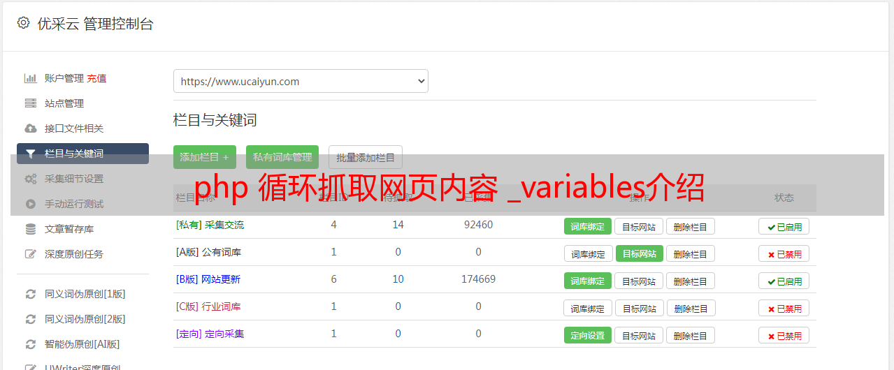 优采云 发布时间: 2022-06-24 18:52php 循环抓取网页内容 _variables介绍