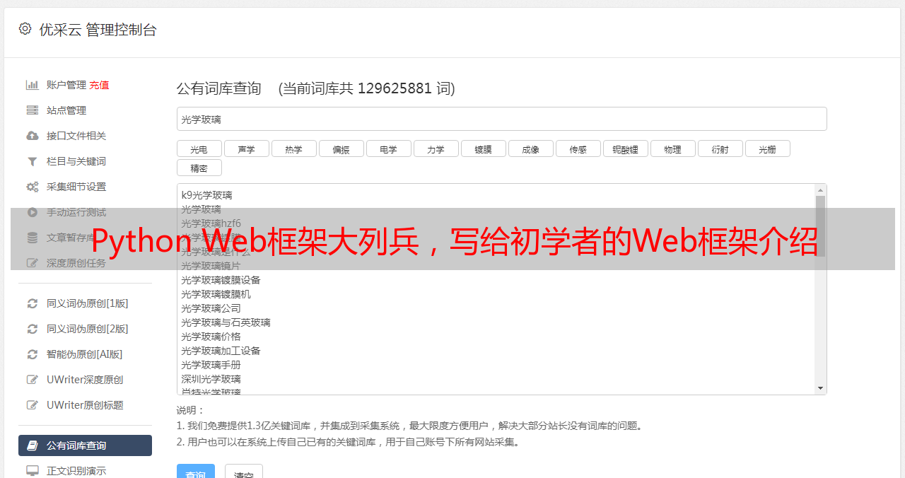 优采云 发布时间: 2022-06-25 06:12Python Web框架大列兵,写给初学者的Web框架介绍