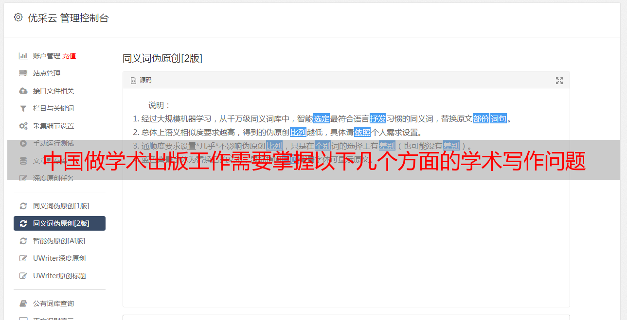 优采云 发布时间: 2022-07-04 07:02中国做学术出版工作需要掌握以下几个方面的学术写作问题