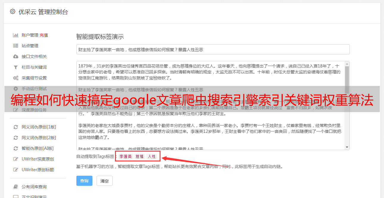 编程如何快速搞定google文章爬虫搜索引擎索引关键词权重算法