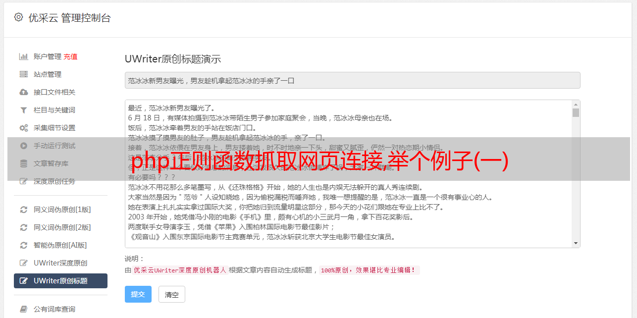 优采云 发布时间: 2022-07-04 19:02php正则函数抓取网页连接,举个例子(一)