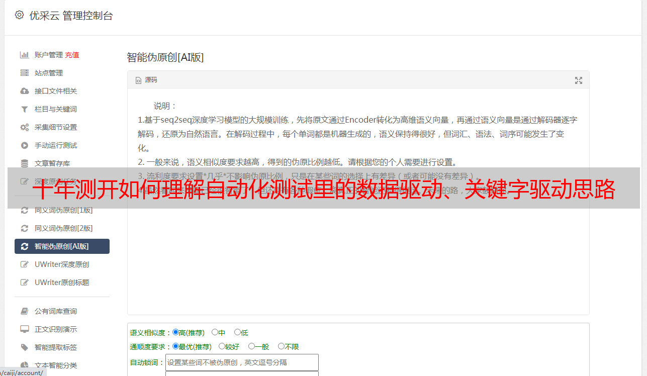 优采云 发布时间: 2022-07-07 11:30十年测开如何理解自动化测试里的数据驱动、关键字驱动思路