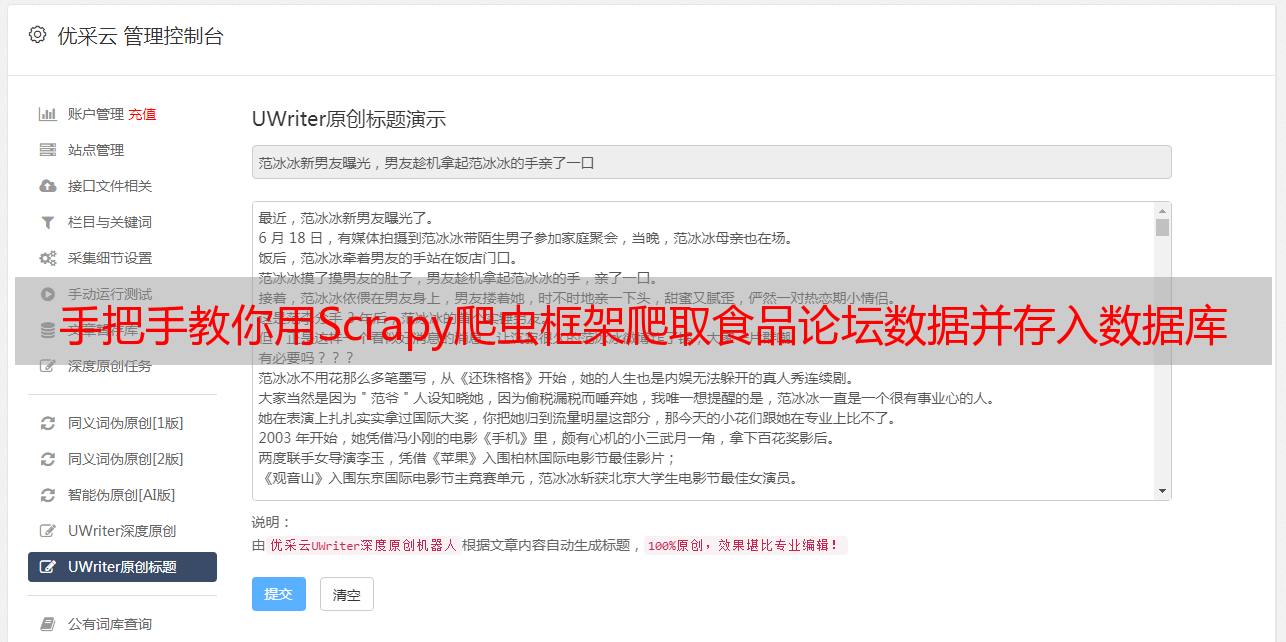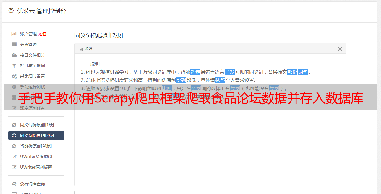 优采云 发布时间: 2022-07-08 00:20*敏*感*词*教你用Scrapy爬虫框架爬取食品论坛数据并存入数据库