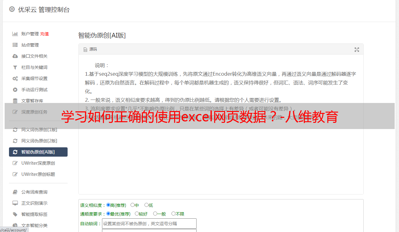 优采云 发布时间: 2022-07-08 19:06学习如何正确的使用excel网页数据?-八维教育