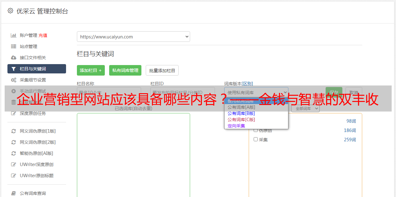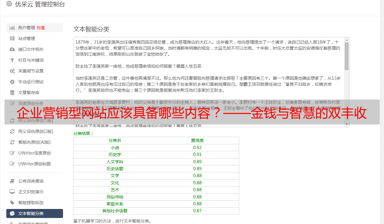优采云 发布时间: 2022-07-10 09:00企业营销型网站应该具备哪些内容?——金钱与智慧的双丰收