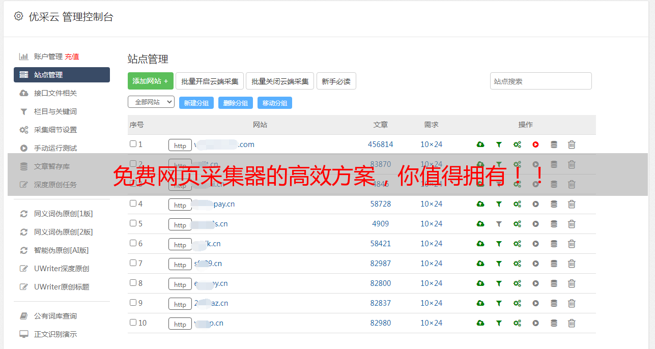 免费网页采集器这个网站是其中的免费网页采集器:点击了解更多