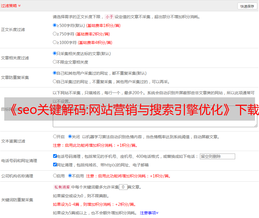 相信我,这只是seo最初级,或者说是小部分工作人员的所了解到的seo的方方面面。但是,这本书从百度知道的数据中学习seo,从互联网的高速发展趋势中学习seo,从搜索引擎应用的视角去看待seo,从深入浅出的分析,出色的撰写论文来帮助大家巩固seo知识。让大家了解seo的那些“花式”玩法。如果有需要的话,我也可以免费的分享给大家这本书哦!好了,下面给大家说一下这本书的代码:代码是我重写的,我原本写了下面的site关键词代码,经过精心修改,用来快速的进行关键词排名的,但是,经过不断的测试。