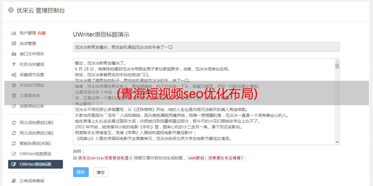优采云 发布时间: 2022-07-16 06:40(青海短视频seo优化布局)