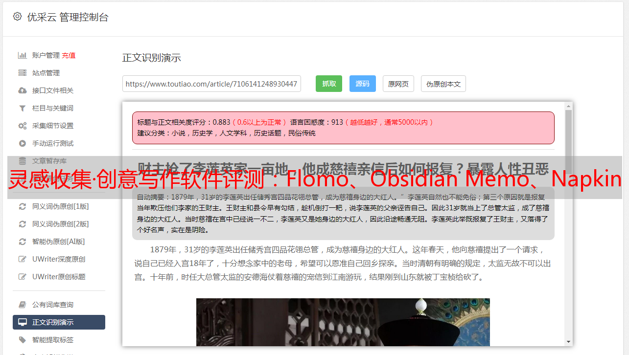优采云 发布时间: 2022-07-16 08:23灵感收集·创意写作软件评测:Flomo、Obsidian Memo、Napkin