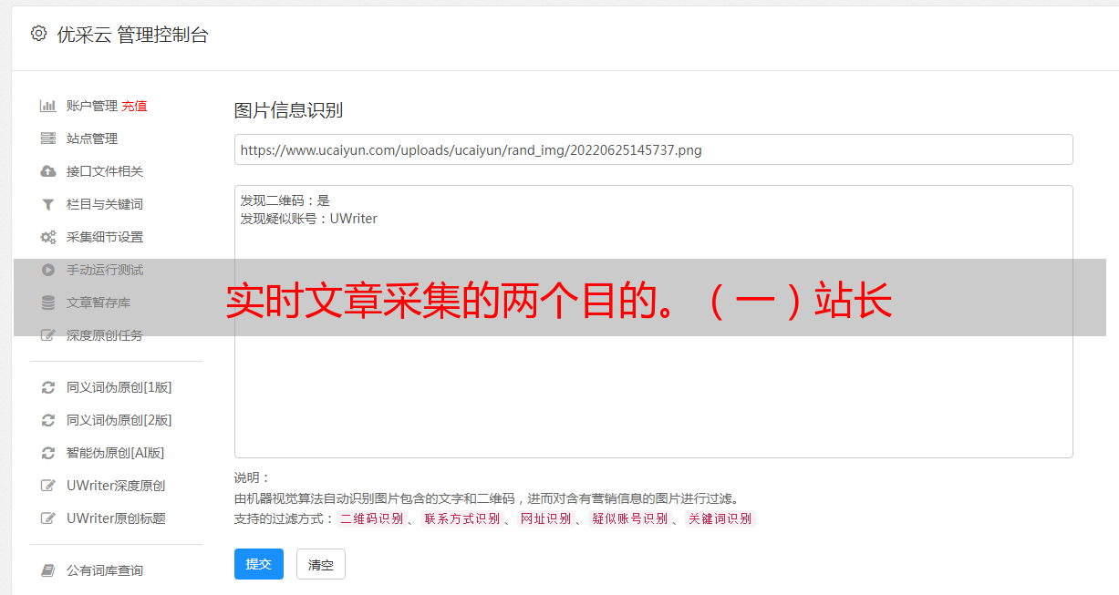 优采云 发布时间: 2022-07-17 01:00实时文章采集的两个目的。(一)站长