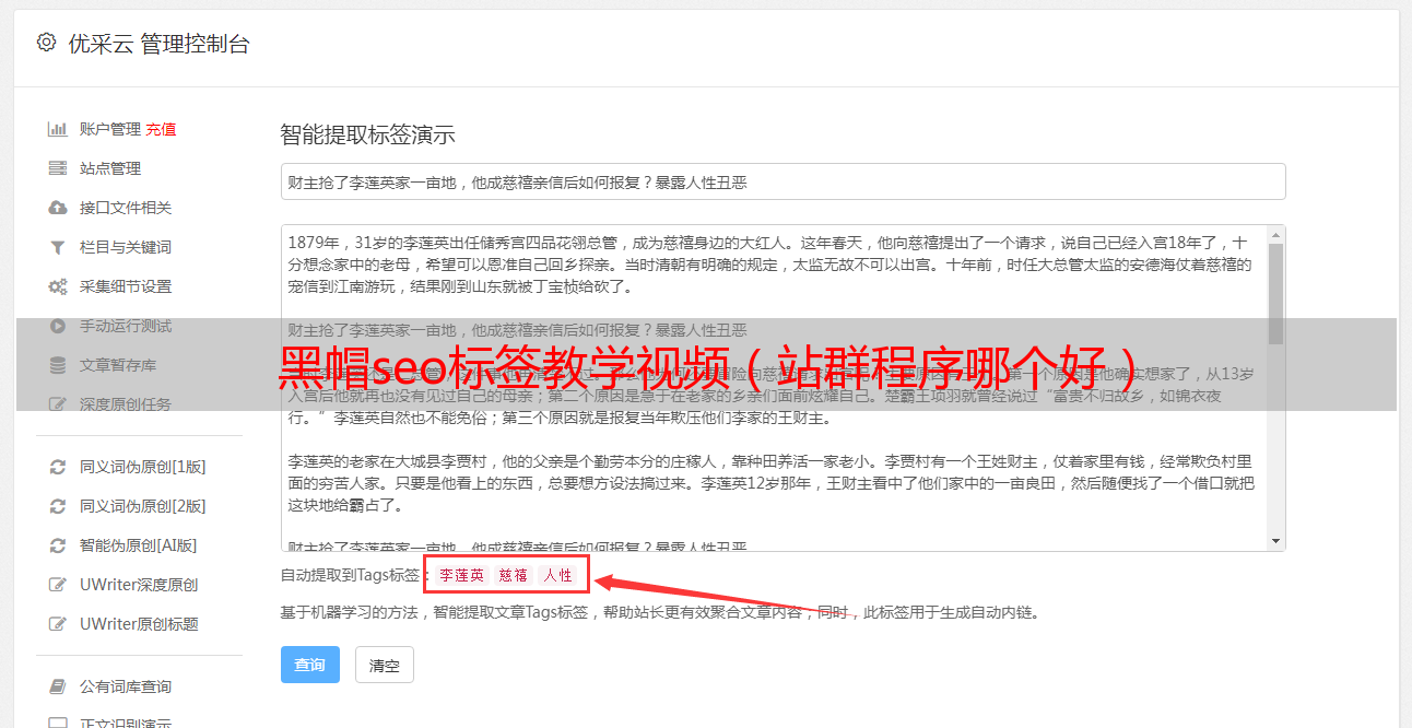 优采云 发布时间: 2022-07-17 17:06黑帽seo标签教学视频(站群程序哪个好)