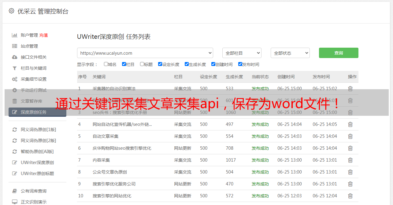 优采云 发布时间: 2022-07-23 07:01通过关键词采集文章采集api,然后按照第一步来。文章每篇5k,保存为word文件。然后可以根据不同的关键词匹配不同的页面标题。按照权重分类,正常情况下,系统会根据先后面的标题来进行过滤,留下权重最高的排列在前面。后面的文章重新排列在后面。一般传统站点适用。