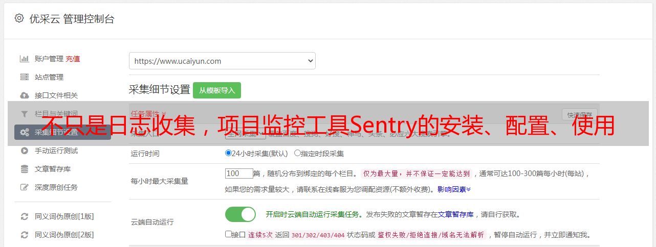 优采云 发布时间: 2022-07-24 12:23不只是日志收集,项目监控工具Sentry的安装、配置、使用