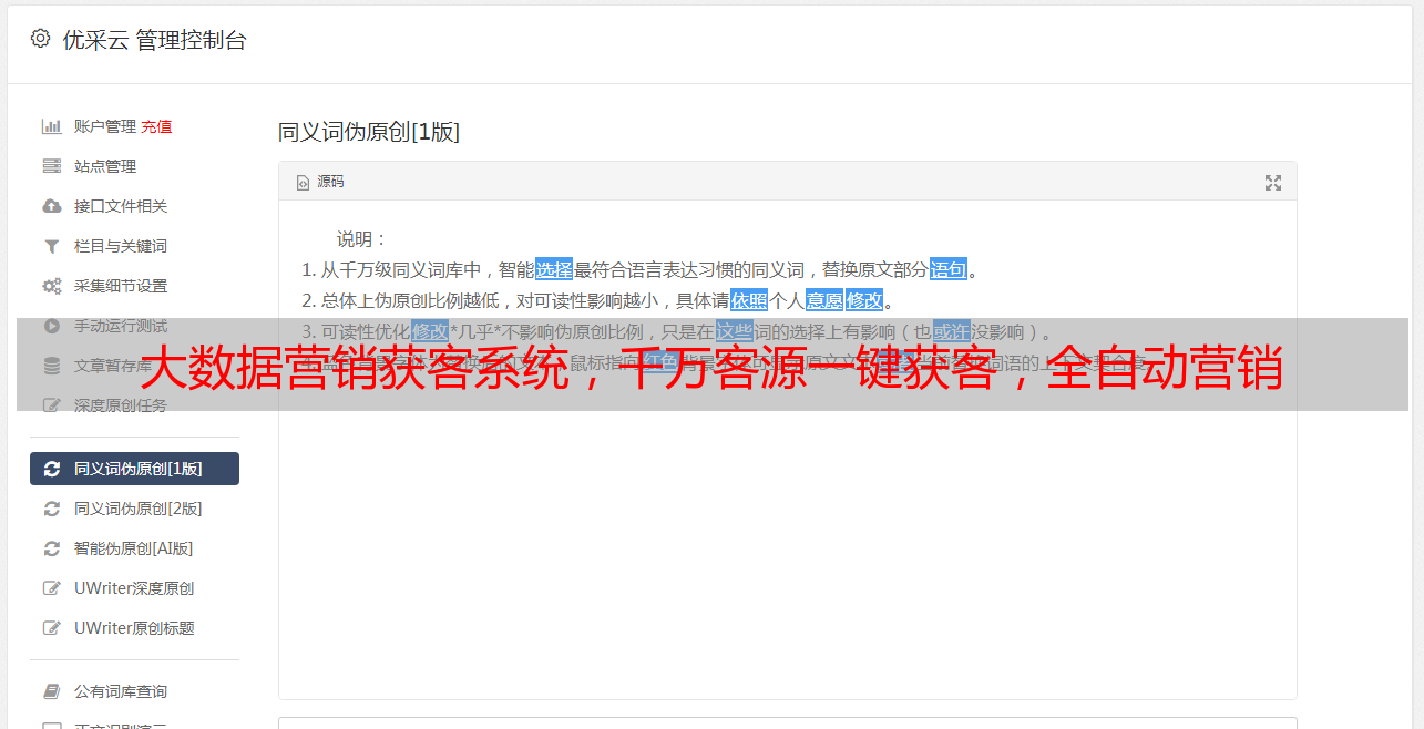 优采云 发布时间: 2022-07-24 21:03大数据营销获客系统,千万客源一键获客,全自动营销
