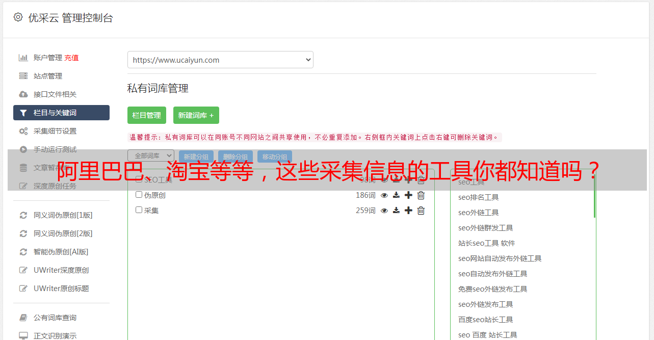 优采云 发布时间: 2022-07-26 08:01阿里巴巴、淘宝等等,这些采集信息的工具你都知道吗?