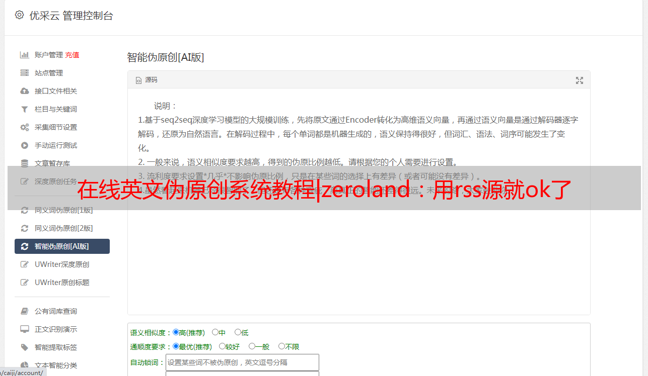 优采云 发布时间: 2022-07-27 06:00在线英文伪原创系统教程|zeroland:用rss源就ok了