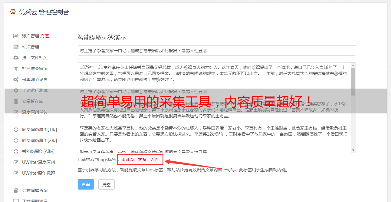 优采云 发布时间: 2022-07-28 17:08超简单易用的采集工具,内容质量超好!