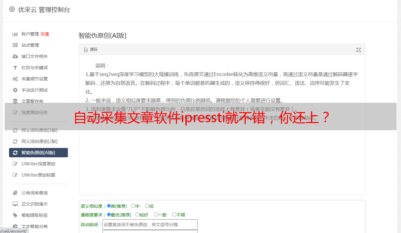 优采云 发布时间: 2022-07-31 10:01自动采集文章软件ipressti就不错,你还上?