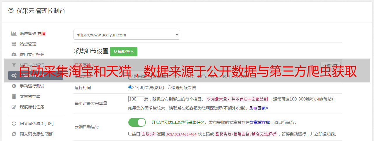 优采云 发布时间: 2022-08-04 03:05自动采集淘宝和天猫,数据来源于公开数据与第三方爬虫获取