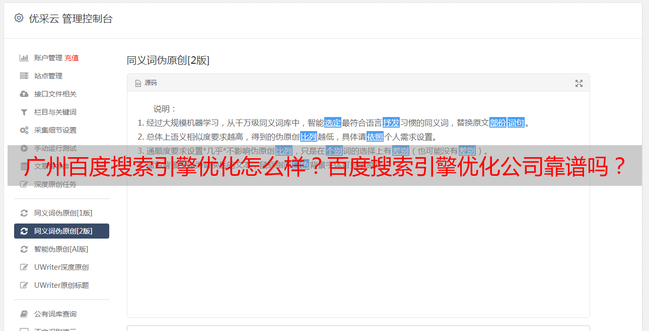 优采云 发布时间: 2022-08-07 17:01广州百度搜索引擎优化怎么样?百度搜索引擎优化公司靠谱吗?