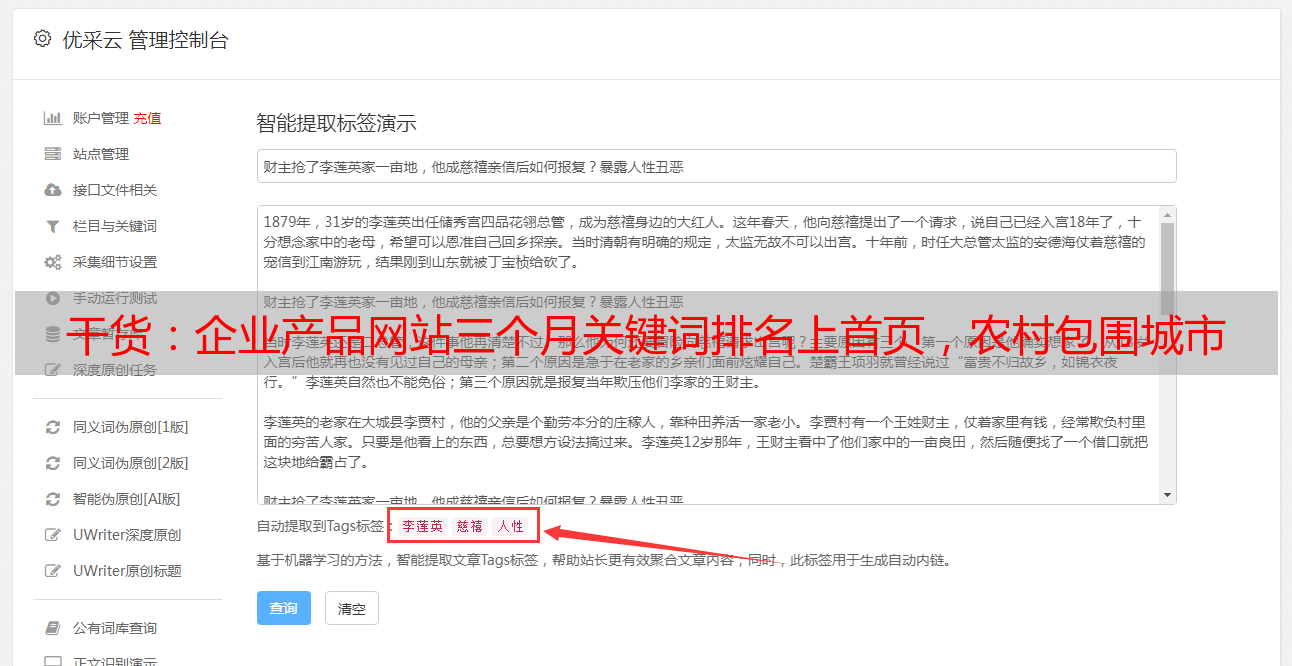 优采云 发布时间: 2022-08-09 04:36干货:企业产品网站三个月关键词排名上首页,农村包围城市