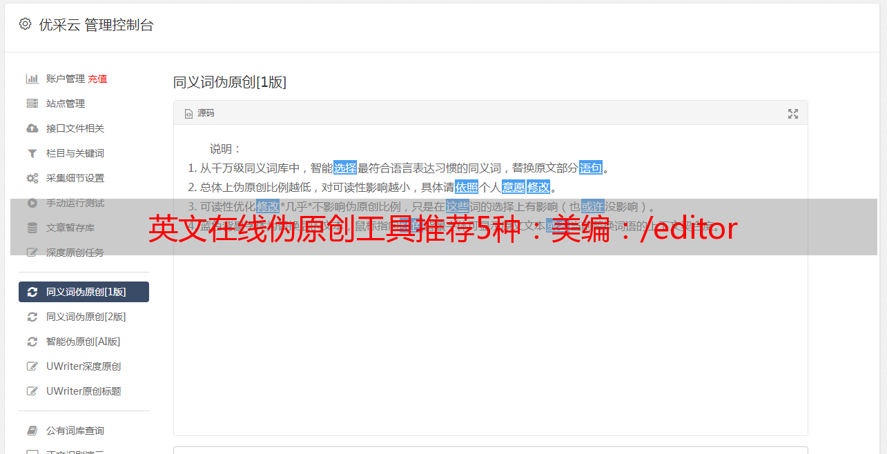 优采云 发布时间: 2022-08-11 00:06英文在线伪原创工具推荐5种:美编:/editor