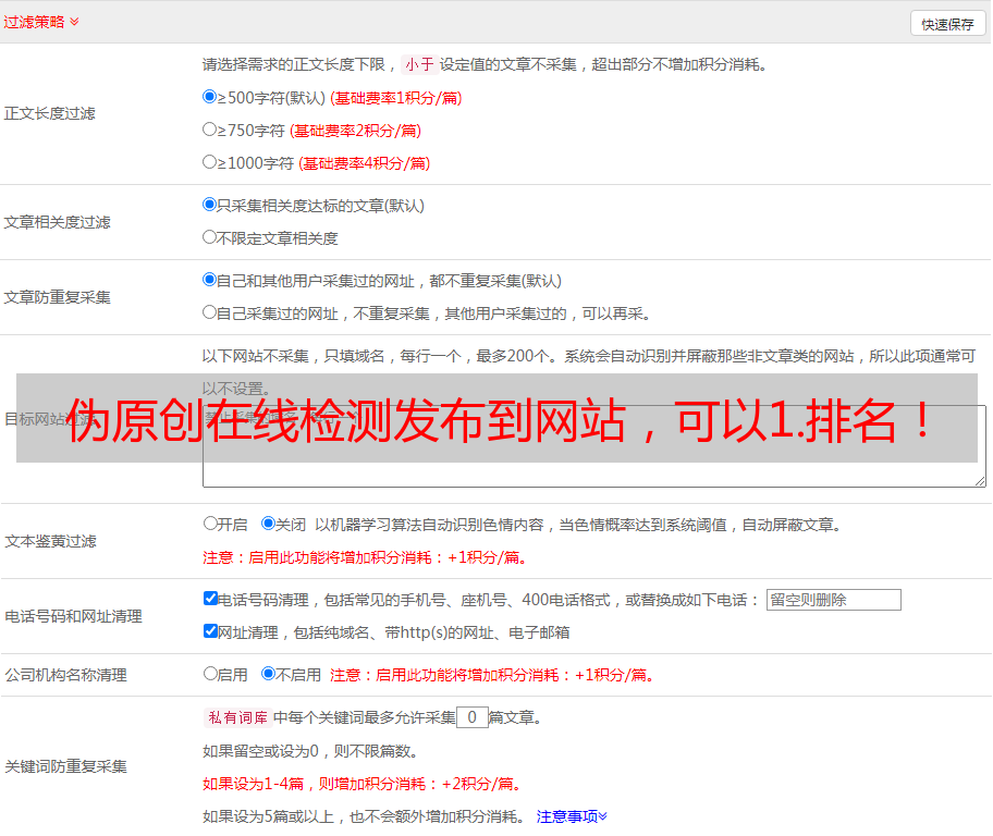 还有,就是成功率了,你必须要评估自己的网站,难度大不大,如果原创发布原创,难度比较大,必须通过机器来检测了,这个你不用单独投入检测检测资金。
