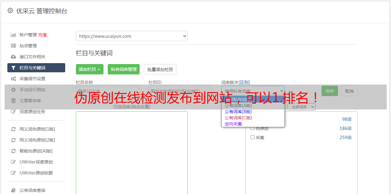 优采云 发布时间: 2022-08-12 08:03伪原创在线检测发布到网站,可以1.排名!