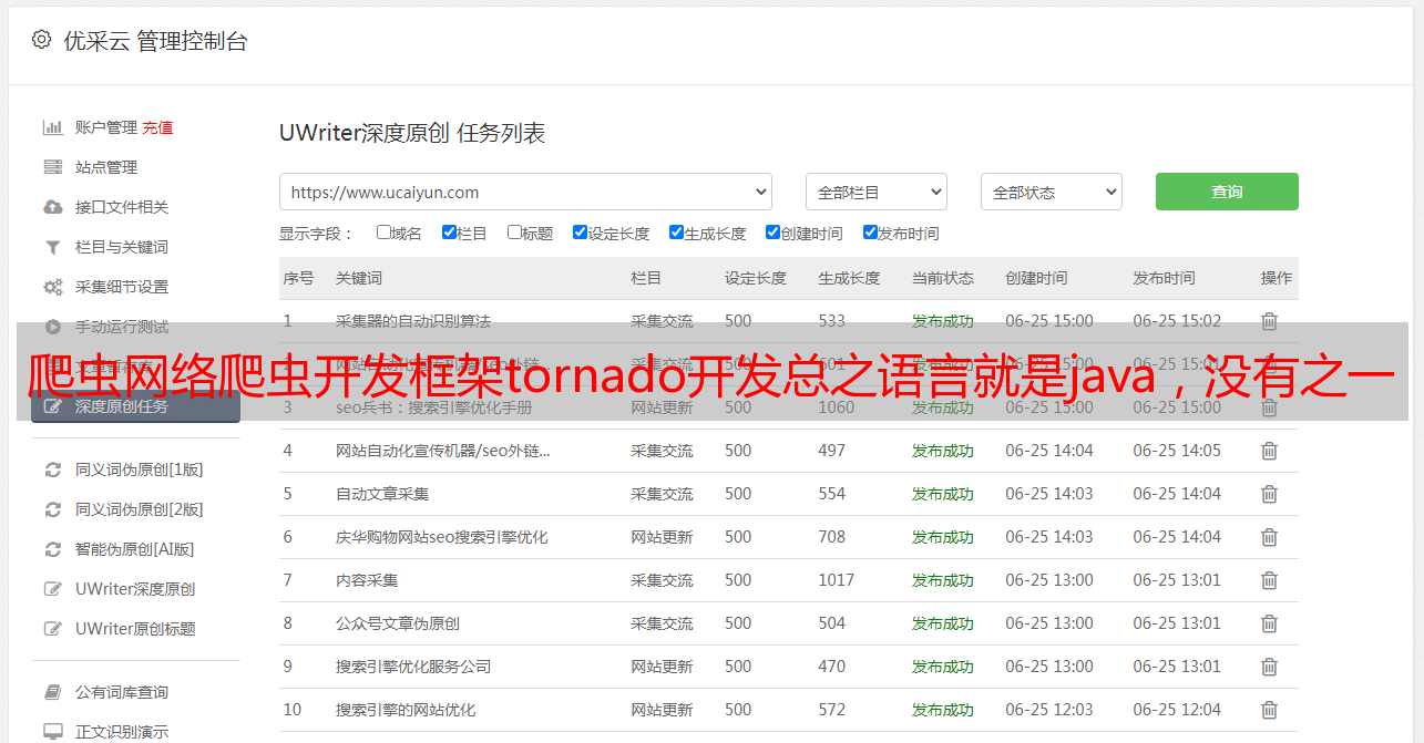优采云 发布时间: 2022-08-13 11:22爬虫网络爬虫开发框架tornado开发总之语言就是java,没有之一