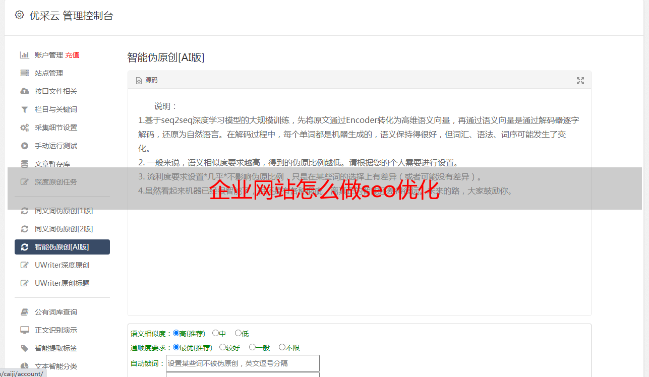 优采云 发布时间: 2022-08-15 15:31企业网站怎么做seo优化