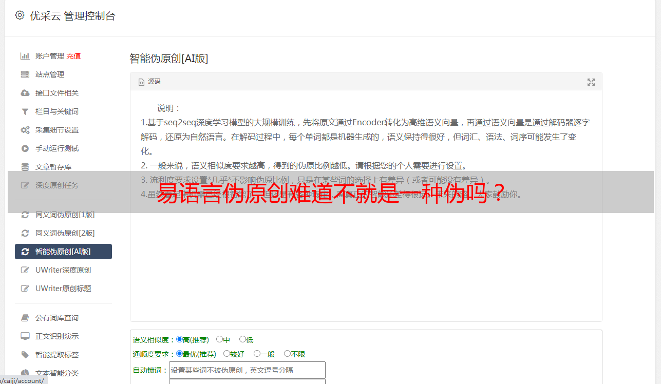 优采云 发布时间: 2022-08-16 02:05易语言伪原创难道不就是一种伪吗?