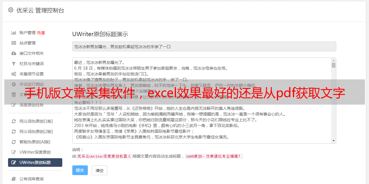手机版文章采集软件,excel效果最好的还是从pdf获取文字