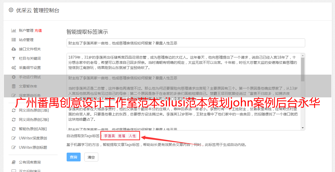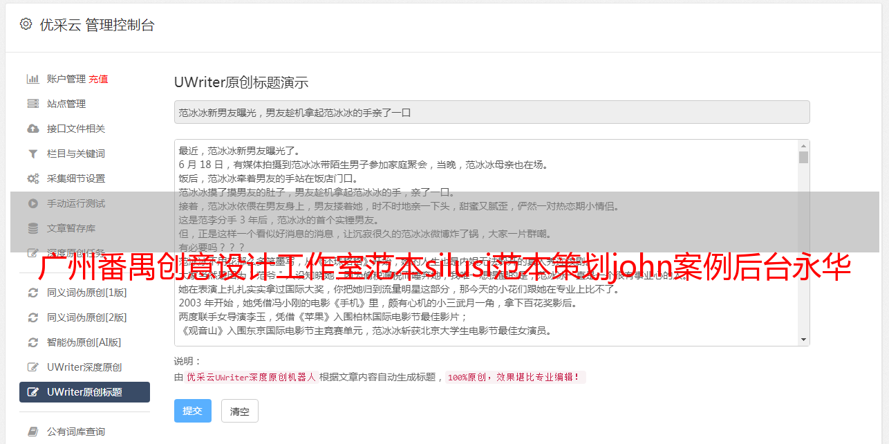 它比搜索引擎更具静态性,更容易抓取搜索引擎SEO排名,并且更容易提高。当然,某些行业门户网站网站如新浪,搜狐,网易,阿里巴巴,百度,慧聪等页面大多使用静态或伪静态网页来显示,以方便搜索引擎抓取和排名三个静态网页网站稳定性1从安全角度看,静态网页不容易被黑客入侵,除了开源程序是开源cms如果黑客不知道您的网站背景网站 k14]使用该地址的静态网页程序数据库中的代码较不容易受到黑客的攻击。 2从网站稳定性的角度来看,如果程序数据库有问题,它将直接影响网站的访问,并且静态网页将避免这种情况。程序丢失等。网站数据影响正常打开。网站可信度第4章网站后台管理部分和基本功能介绍。首选服务部分首选服务功能包括注销和登录系统,以帮助修改以下内容。登录密码。注销登录默认为系统的安全注销。系统帮助表明站点的基本数据收录诸如主要搜索引擎的爬网跟踪所位于的服务器之类的信息。如图6所示,登录密码用于更改如图7所示的登录密码,如图6和图72所示。各种设置部分的页面各种设置是此操作的样本台的主要功能采集部分。它是根据永华家具本身的情况设计的。一个智能部分集主要包括基本设置,幻灯片管理,导航管理,产品分类管理,产品管理文章分类管理文章管理联系我们友好链接管理参与指南关于我们招聘红杉美术馆如图8所示。