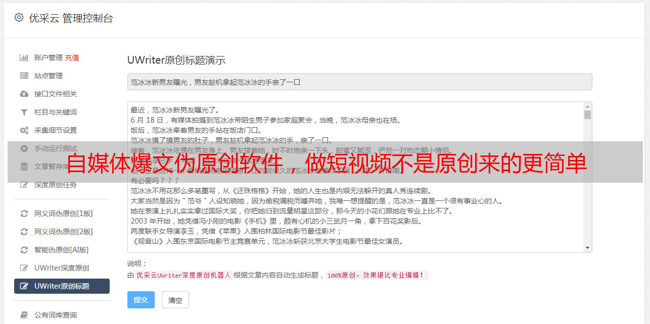 优采云 发布时间: 2022-08-19 02:02自媒体爆文伪原创软件,做短视频不是原创来的更简单