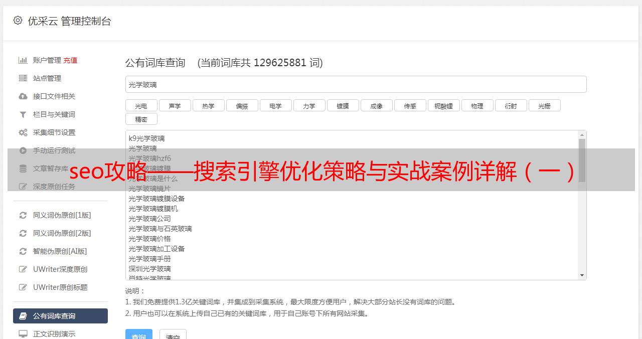 优采云 发布时间: 2022-08-19 09:06seo攻略——搜索引擎优化策略与实战案例详解(一)