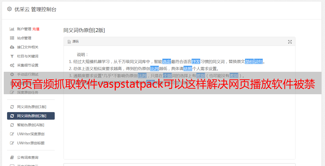 优采云 发布时间: 2022-08-19 16:02网页音频抓取软件vaspstatpack可以这样解决网页播放软件被禁
