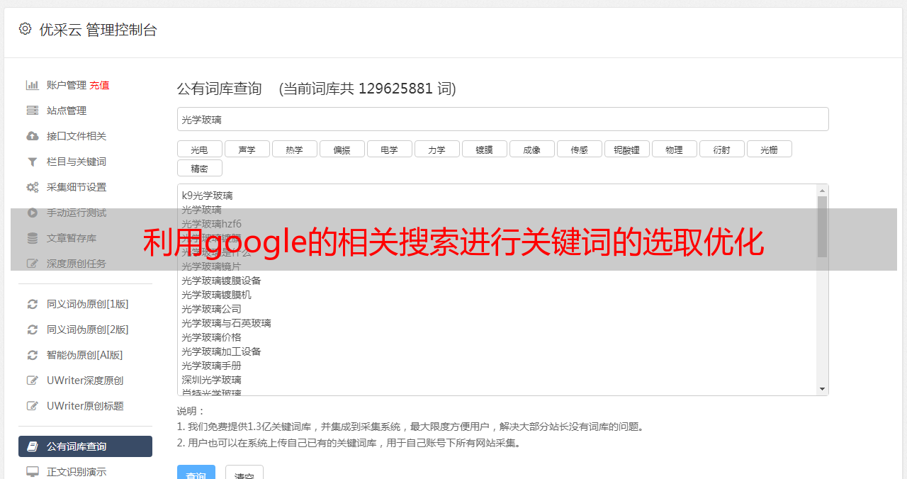 优采云 发布时间: 2022-08-22 19:56利用google的相关搜索进行关键词的选取优化