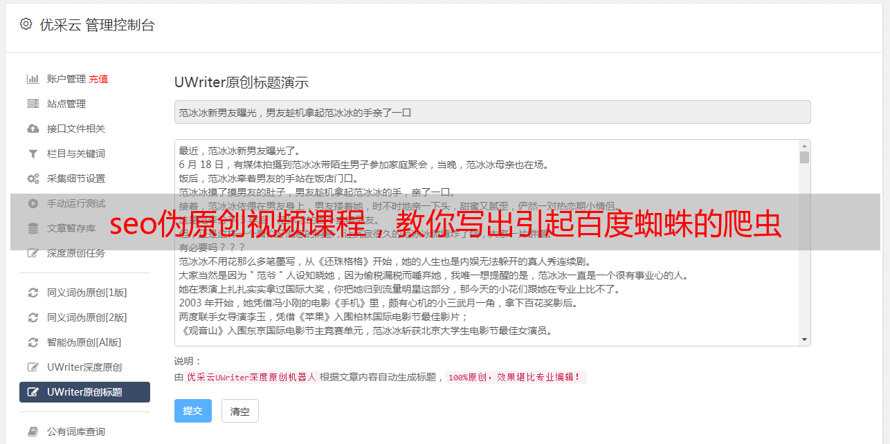 seo伪原创视频课程,教你写出引起百度蜘蛛的爬虫