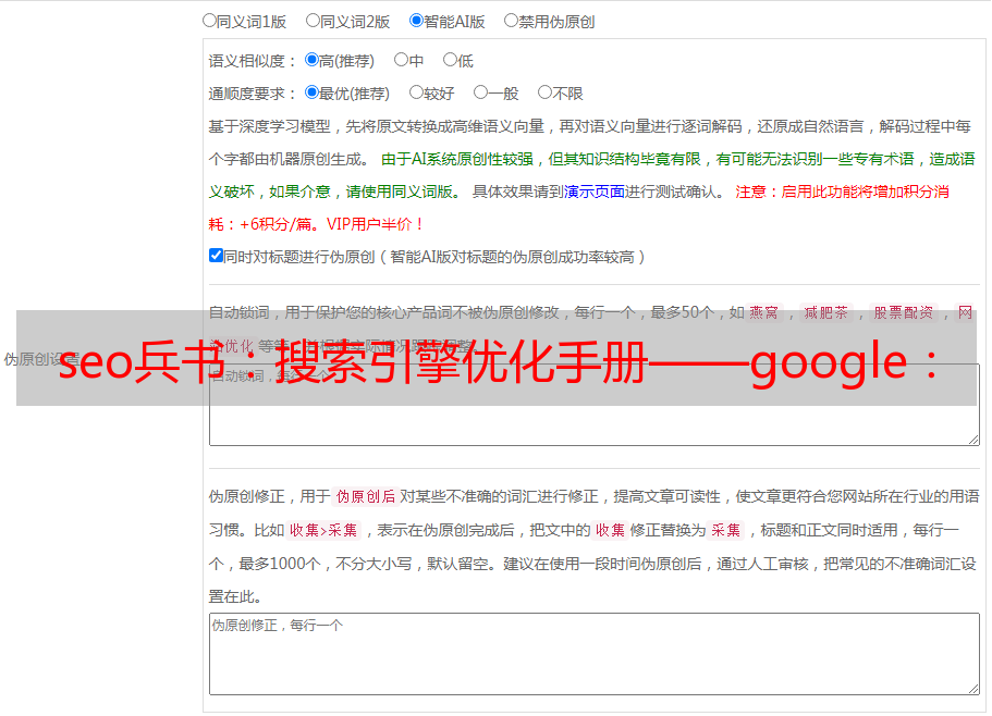 seo兵书:搜索引擎优化手册——google:seo从入门到精通