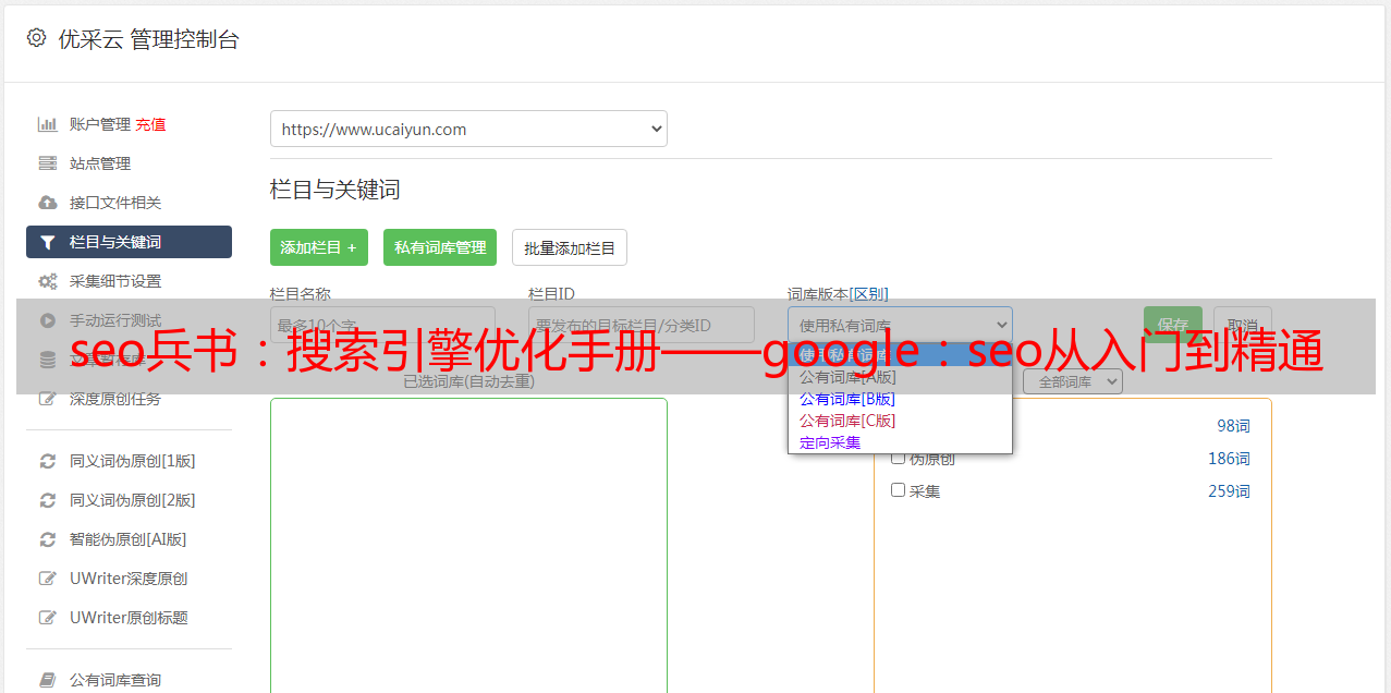 优采云 发布时间: 2022-09-03 01:01seo兵书:搜索引擎优化手册——google:seo从入门到精通