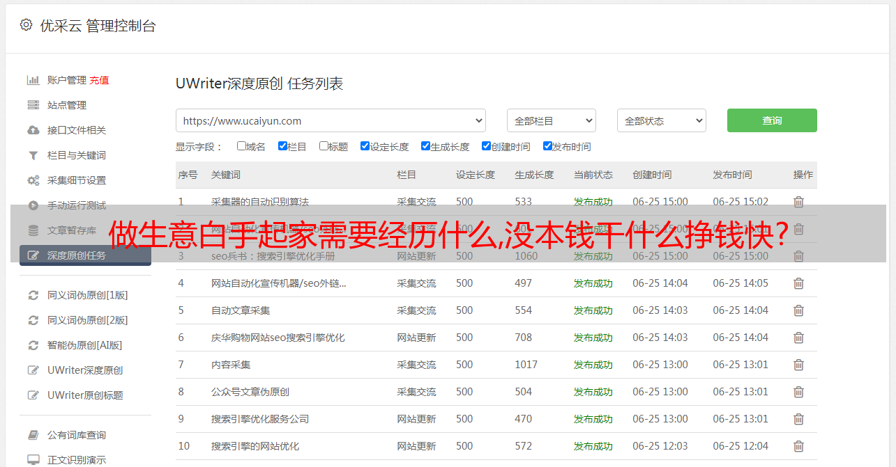 优采云 发布时间: 2022-09-09 12:44做生意白手起家需要经历什么,没本钱干什么挣钱快?