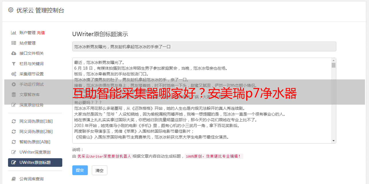 优采云 发布时间: 2022-09-11 02:07互助智能采集器哪家好?安美瑞p7净水器