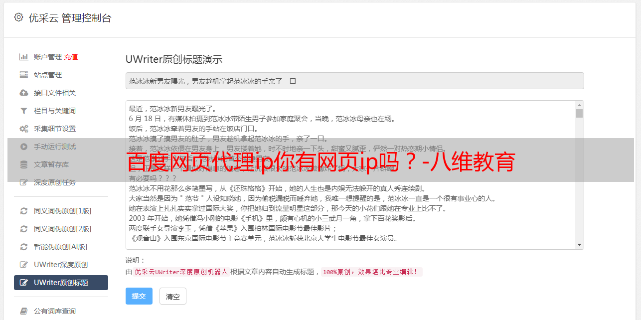 优采云 发布时间: 2022-09-13 08:03百度网页代理ip你有网页ip吗?-八维教育