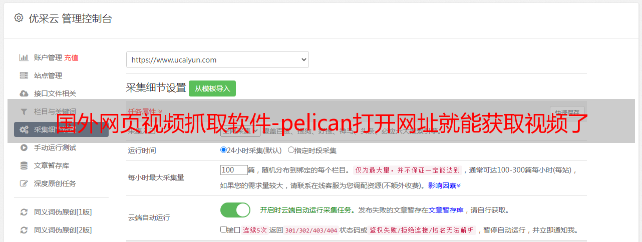 优采云 发布时间: 2022-09-14 23:04国外网页视频抓取软件-pelican打开网址就能获取视频了