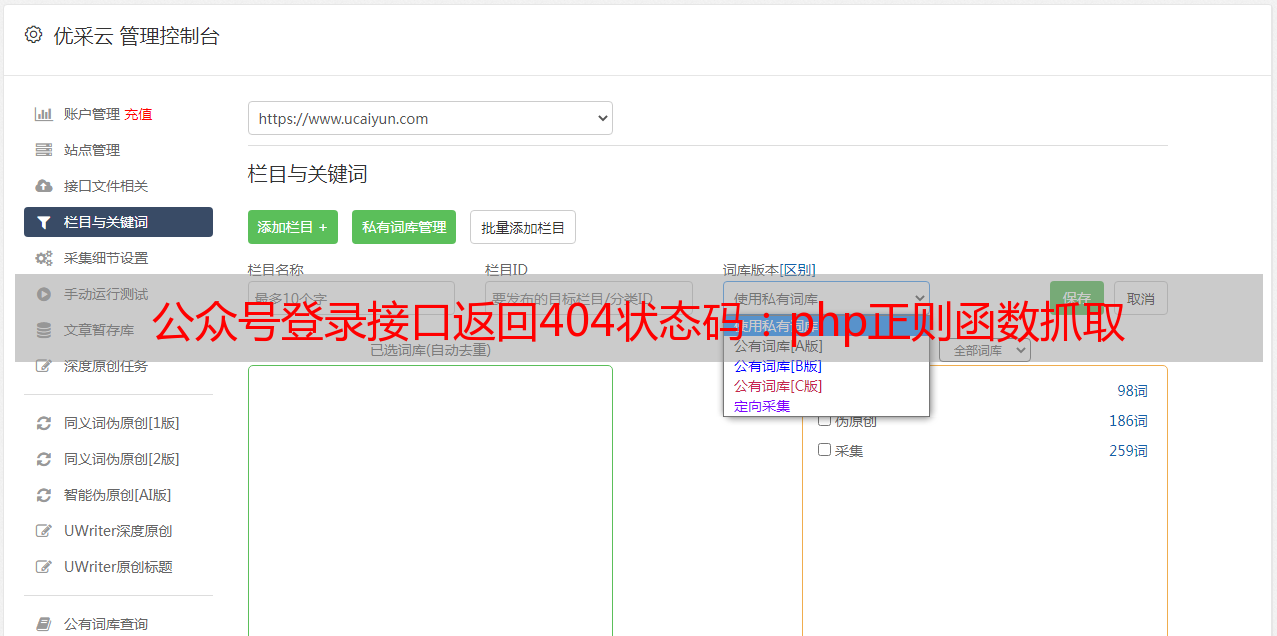 优采云 发布时间: 2022-09-17 04:00公众号登录接口返回404状态码:php正则函数抓取