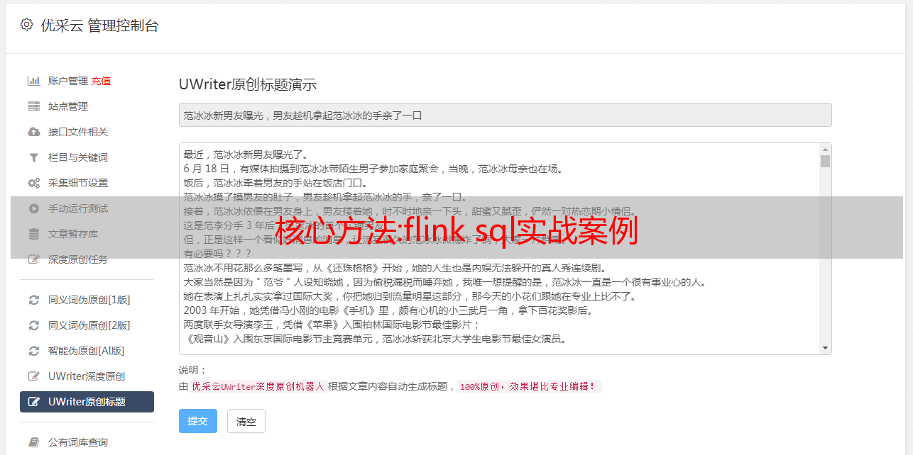优采云 发布时间: 2022-09-21 18:13核心方法:flink sql实战案例