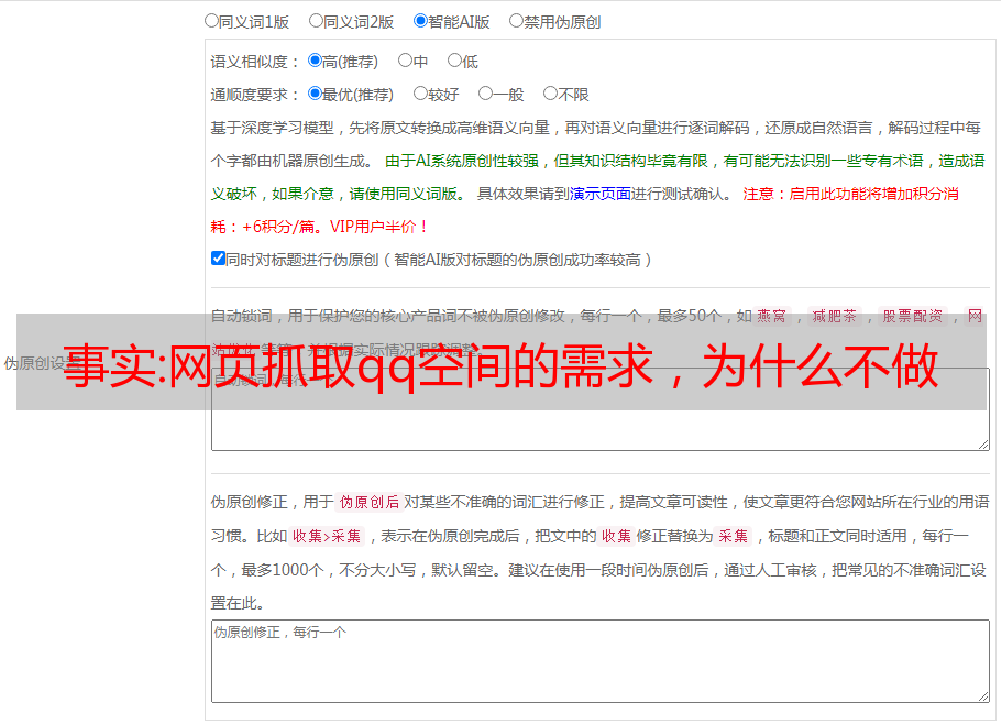事实:网页抓取qq空间的需求,为什么不做,而是自己掏钱做