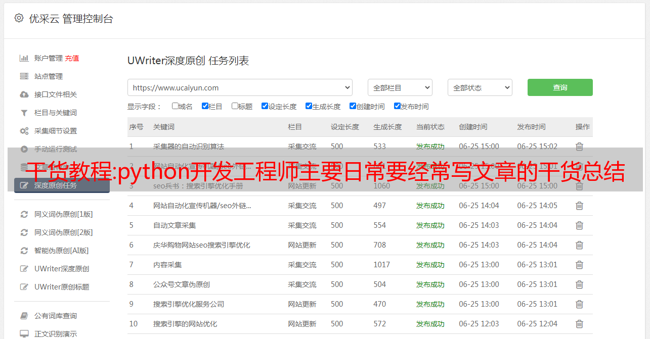 优采云 发布时间: 2022-09-22 17:05干货教程:python开发工程师主要日常要经常写文章的干货总结