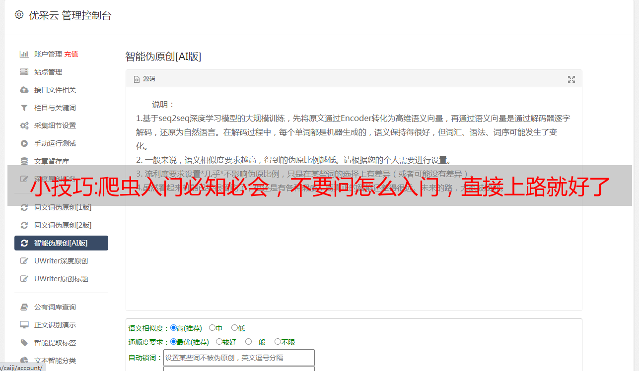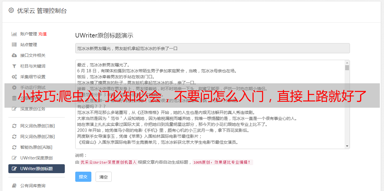 优采云 发布时间: 2022-09-23 13:09小技巧:爬虫入门必知必会,不要问怎么入门,直接上路就好了